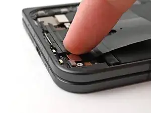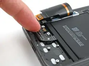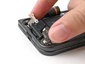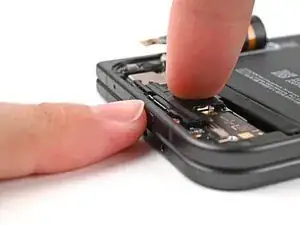 Используйте пинцет или пальцы, чтобы отодвинуть кронштейн батареи в сторону от нажимного разъёма батареи.