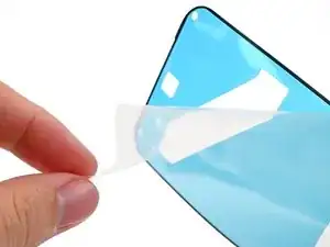 Отделите клей для внешнего экрана в нижнем левом углу от прозрачной подложки, чтобы открыть клейкую поверхность.