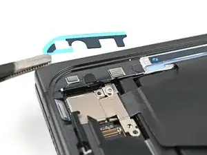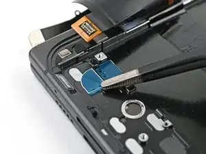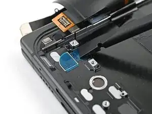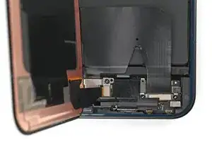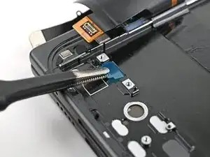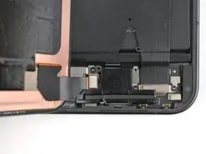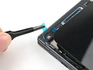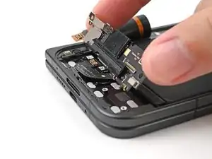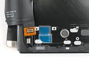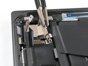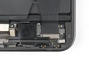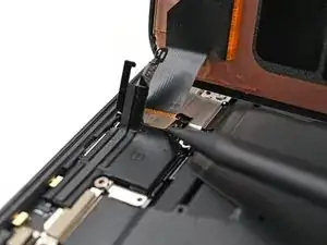 Используйте лопаточку или пальцы, чтобы приподнять кронштейн шлейфа дисплея и получить доступ к нажимному разъёму под ним.