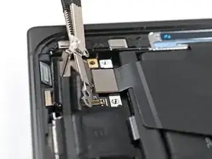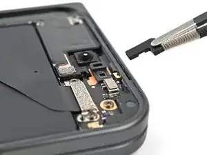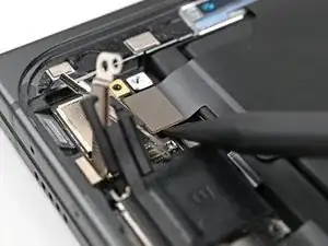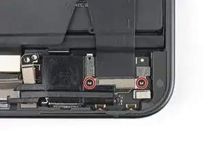 Используйте отвёртку Torx Plus 3IP, чтобы вывернуть винт длиной 2.2 мм, крепящий кронштейн шлейфа дисплея.