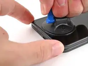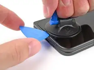 Потяните присоску вверх с сильной, равномерной силой, чтобы создать зазор между экраном и корпусом.
