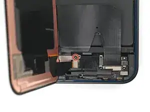 Используйте отвёртку Torx Plus 3IP, чтобы установить винт длиной 2,2 мм, фиксирующий кронштейн шлейфа дисплея.