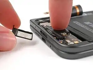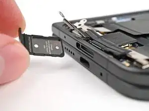Держа нижнюю плату на месте, вставьте обратно лоток для SIM-карты.