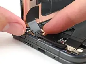 Приподнимите нижний край телефона, чтобы изопропиловый спирт смог затечь под батарею.