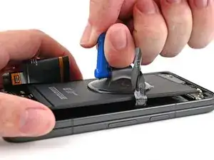 Оставшийся клей чрезвычайно прочен. Чтобы избежать изгиба батареи, следующие три шага показывают, как использовать изопропиловый спирт и присоску для её снятия.