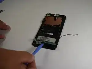 Используя пластиковый инструмент для поддевания, отделите печатную плату от экрана телефона.