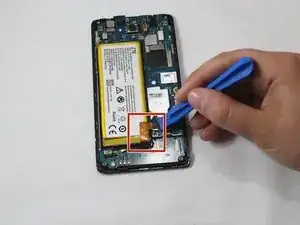 Используйте пластиковый инструмент для подъёма коннектора и отключения кабеля батареи.