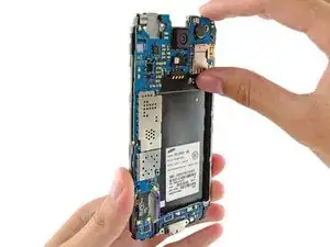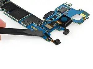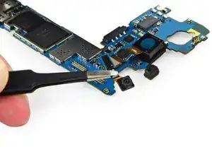 Снимите фронтальную камеру с материнской платы пинцетом.