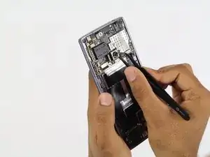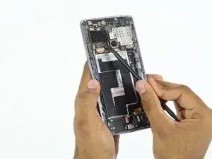 Осторожно приподнимите среднюю рамку с задней панели телефона с помощью пластиковых инструментов для вскрытия.