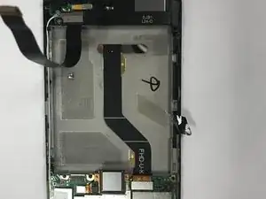 Используйте пластиковый инструмент для открытия, чтобы отогнуть и отключить кабель дисплея от материнской платы.