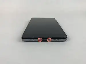 Удалите два винта Torx T3 длиной 1,17 мм с нижней части телефона.