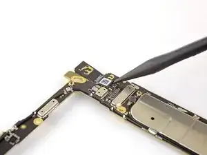 Используйте наконечник медиатора, чтобы приподнять и отключить гибкий кабель экрана.