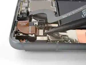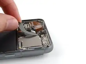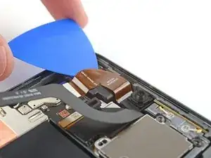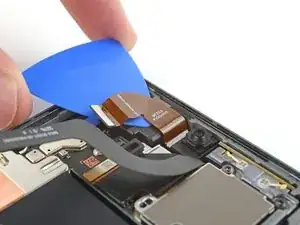 Используйте лопатку, чтобы приподнять и отключить шлейф передней камеры от логической платы.