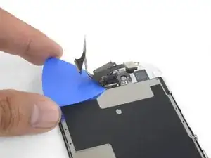 Просуньте медиатор под сборку кабеля передней камеры, отделяя клей, удерживающий кабель камеры и датчика.