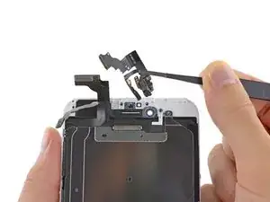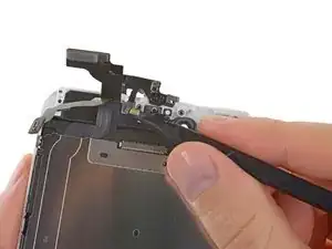 С помощью пинцета крепко захватите и удалите слуховой динамик из монтажной панели дисплея.