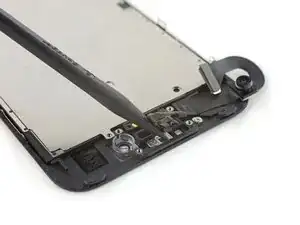 Не пытайтесь полностью отсоединить дисплей — несколько хрупких шлейфов всё ещё соединяют его с платой iPhone.