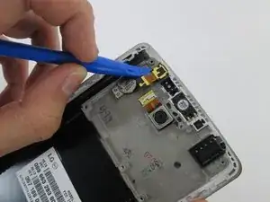 Осторожно приподнимите шлейф пластиковым инструментом для открытия. Удалите переднюю камеру и замените её соответствующей деталью.