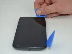Когда клей ослабнет, подденьте край экрана пластиковой лопаткой или медиатором. Также здесь может пригодиться присоска.
