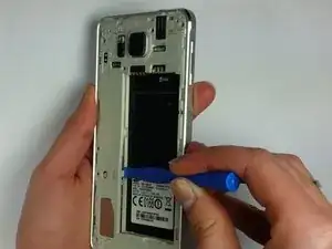 Найдите вырез у основания аккумулятора и вставьте большой палец.