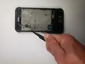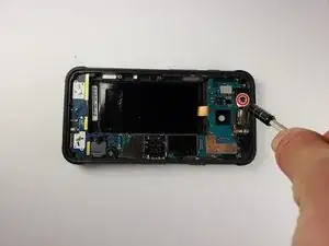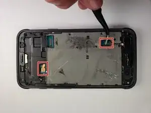 С помощью пинцета снимите разъём между материнской платой и передней камерой.