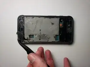 Вставьте металлическую лопатку между экраном и рамкой, чтобы начать их разделение.
