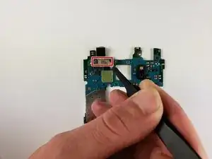 С помощью пинцета выньте среднюю кнопку и её разъём с материнской платы.