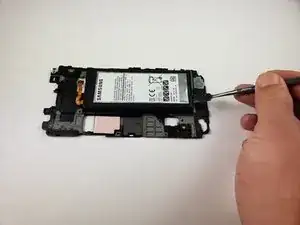 Используйте лопатку, чтобы извлечь батарею из средней рамки.