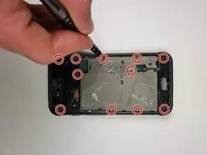 Используйте отвертку Phillips #000, чтобы вывернуть одиннадцать винтов, отмеченных на фото.