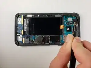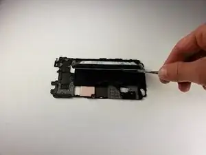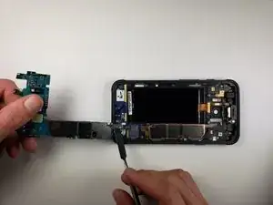 Используя руки и металлическую лопатку, поднимите материнскую плату из телефона.