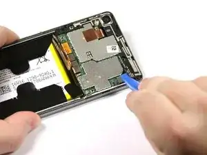 Используйте пластиковый инструмент для вскрытия по периметру, чтобы поддеть заднюю крышку.