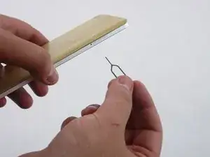 Используйте инструмент для извлечения лотка двойной SIM/SD-карты (или скрепку) и вставьте его в отверстие слота, пока лоток не выскочит.