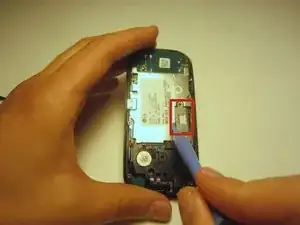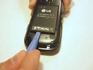Воспользуйтесь пластиковой отверткой, чтобы поднять и извлечь аккумулятор устройства.