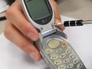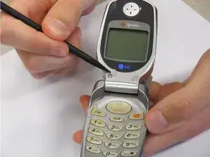 Снимите динамик, который приклеен к передней крышке, используя маленькую плоскую отвертку.