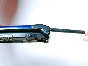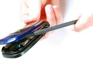 Осторожно вставьте лопатку между лицевой панелью и шарнирным механизмом.