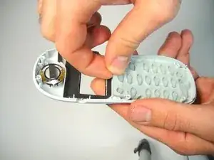 Зафиксируйте верхнюю часть резиновой клавиатуры большим и указательным пальцем