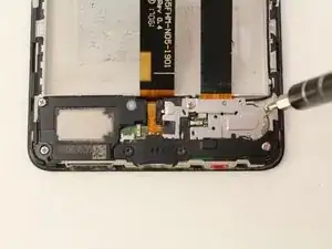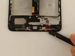 Отсоедините узел динамика и микрофона, проведя лопаткой вдоль нижней части телефона.