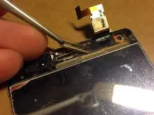 Не забудьте отклеить гибкий кабель дигитайзера, поскольку он приклеен к датчику приближения, и при снятии передней панели он может повредиться, если вы забудете это сделать.