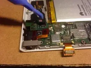 Чтобы снять материнскую плату, начните с отсоединения гибкого кабеля аккумулятора, чтобы избежать возможных коротких замыканий при отсоединении остальных гибких кабелей.