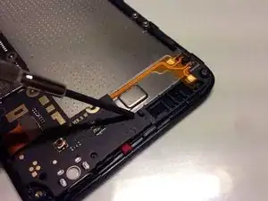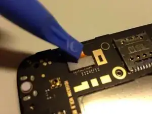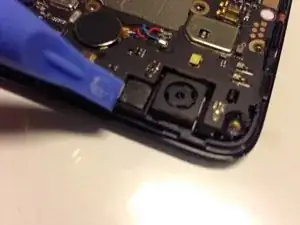 Осторожно подденьте между рамкой экрана и задней панелью телефоа, чтобы получить доступ к внутренностям устройства.