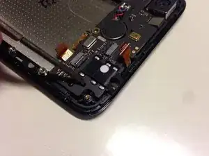 Убедитесь, что шлейф, указанный на втором изображении, приклеен к задней части дисплея. Если на шлейфе не осталось клея, можно использовать тонкий двусторонний скотч.