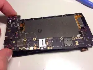 Аккуратно подденьте камеру, чтобы её можно было снять вместе с материнской платой.