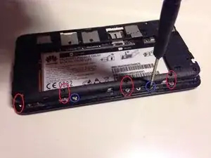 Начните с открытия задней крышки Ascend G630, поддев рамку и заднюю крышку лопаткой или ногтем и аккуратно отогнув её.