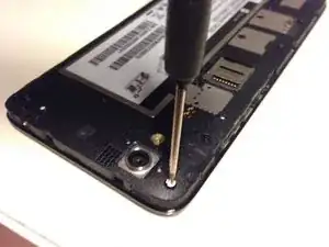 С помощью крестовой отвёртки выкрутите все винты на задней панели телефона.