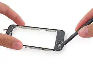 Будьте осторожны при использовании тепловой пушки на следующих шагах. Используйте очень низкий уровень нагрева и следите, чтобы не расплавить пластиковые части сенсорного экрана или кнопку «Домой». Металлическая рамка хорошо проводит тепло, поэтому старайтесь не касаться сильно нагретых зон.