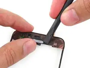 Используйте ногти, чтобы медленно приподнять левый угол. Пластиковые части сенсорного экрана приклеены к стеклу с помощью клея. Чтобы освободить углы, может потребоваться некоторое усилие.