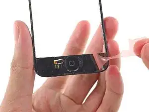 Она состоит из трёх отдельных частей: убедитесь, что вы подняли **элемент для кнопки «Домой»**, **центральный элемент стекла** и **элемент под кабелями**. Неподнятая подкладка может привести к плохому приклеиванию и мутному экрану.