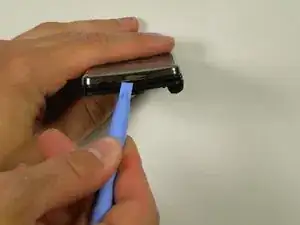 Вставьте пластиковый инструмент для открытия в складку и проведите им вдоль каждого края телефона.