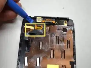 Используйте пинцет, чтобы удалить желтую ленту, закрывающую разъем кабеля LCD/дигитайзера.