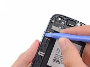Вставьте пластиковый открывающий инструмент с внешней стороны возле динамика в сборки разъёма для наушников/динамика.