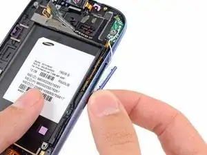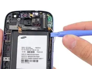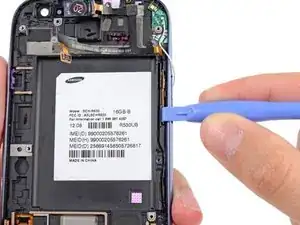 Вставьте пластиковый открывающий инструмент в небольшую выемку над аккумулятором.